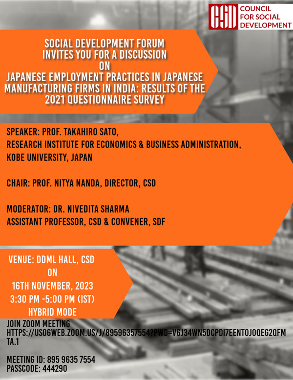 Topic: “Japanese Employment Practices in Japanese Manufacturing Firms in India: Results of the 2021 Questionnaire Survey”