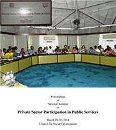 Proceedings of National Seminar on Private Sector Participation in Public Services The hallmark of a democratic polity lies in a morally binding social contract between government and citizens manifested in former’s political commitment to pursue social goals which are widely accepted as essential human rights. The core of this contract is universal provision of public services that satisfy human needs and creation of essential conditions for individuals to lead dignified lives and realize their human potential. In India, the essentials of this social contract were built into the Constitution itself which put pressure on the State to make these services available to all its citizens. Read More